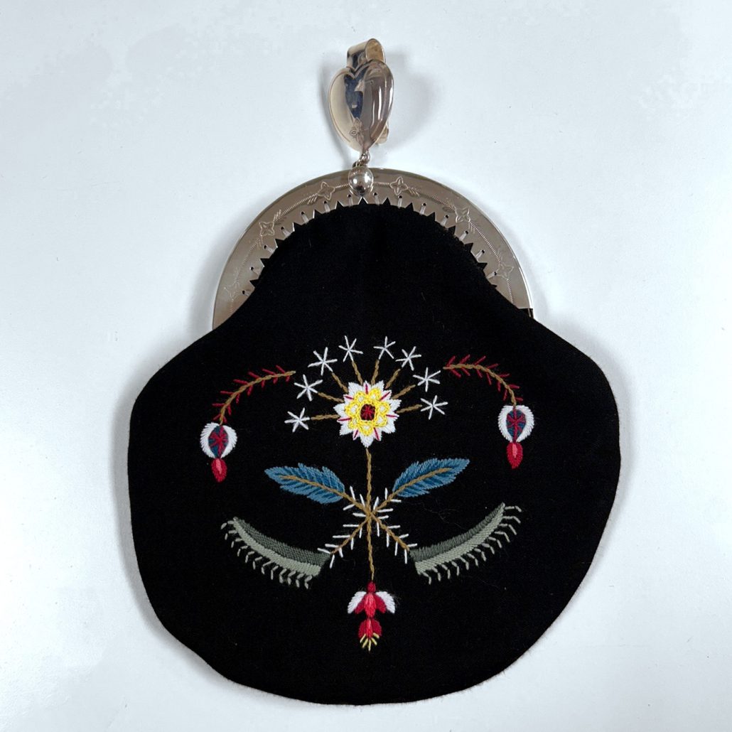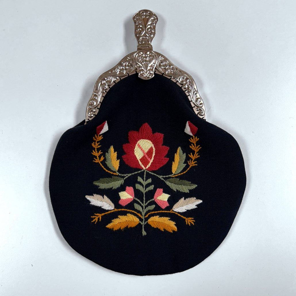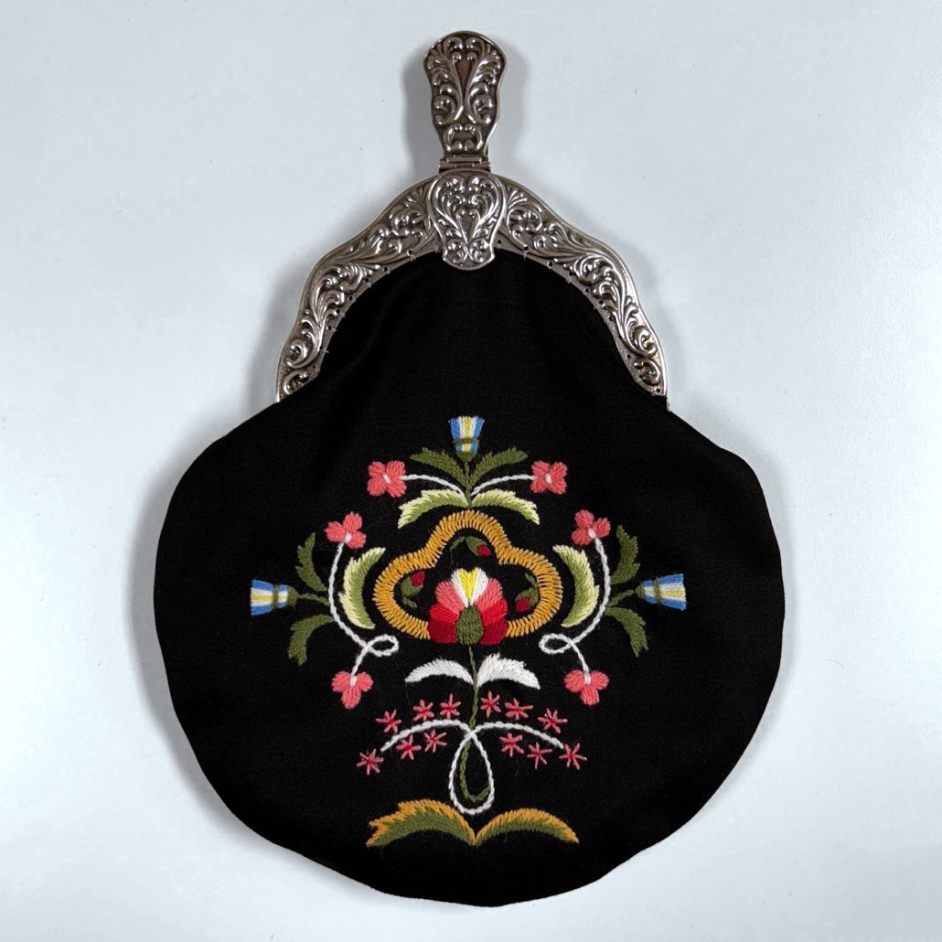 Prøvelappen tar utgangspunkt i vesken til Rogalandsbunaden.